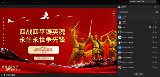为传承红色基因,凝聚奋进力量,值此中国人民解放军建军98周年之际,8月4日,永利3044noc党委邀请松江老兵讲故事宣讲团赵卫东老师讲授线上主题党课,学院全体学生党员及各专业学生代表参加。