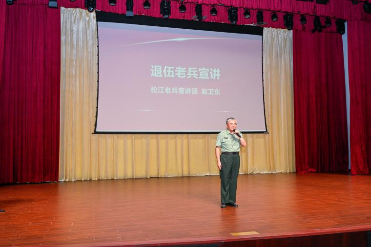 松江老兵讲故事宣讲团赵卫东期望新生传承红色基因,赓续奋斗精神。校友代表、上海电力机械有限公司党委书记刘立峰为新生分享找准就业方向、扎根专业成长的思路。