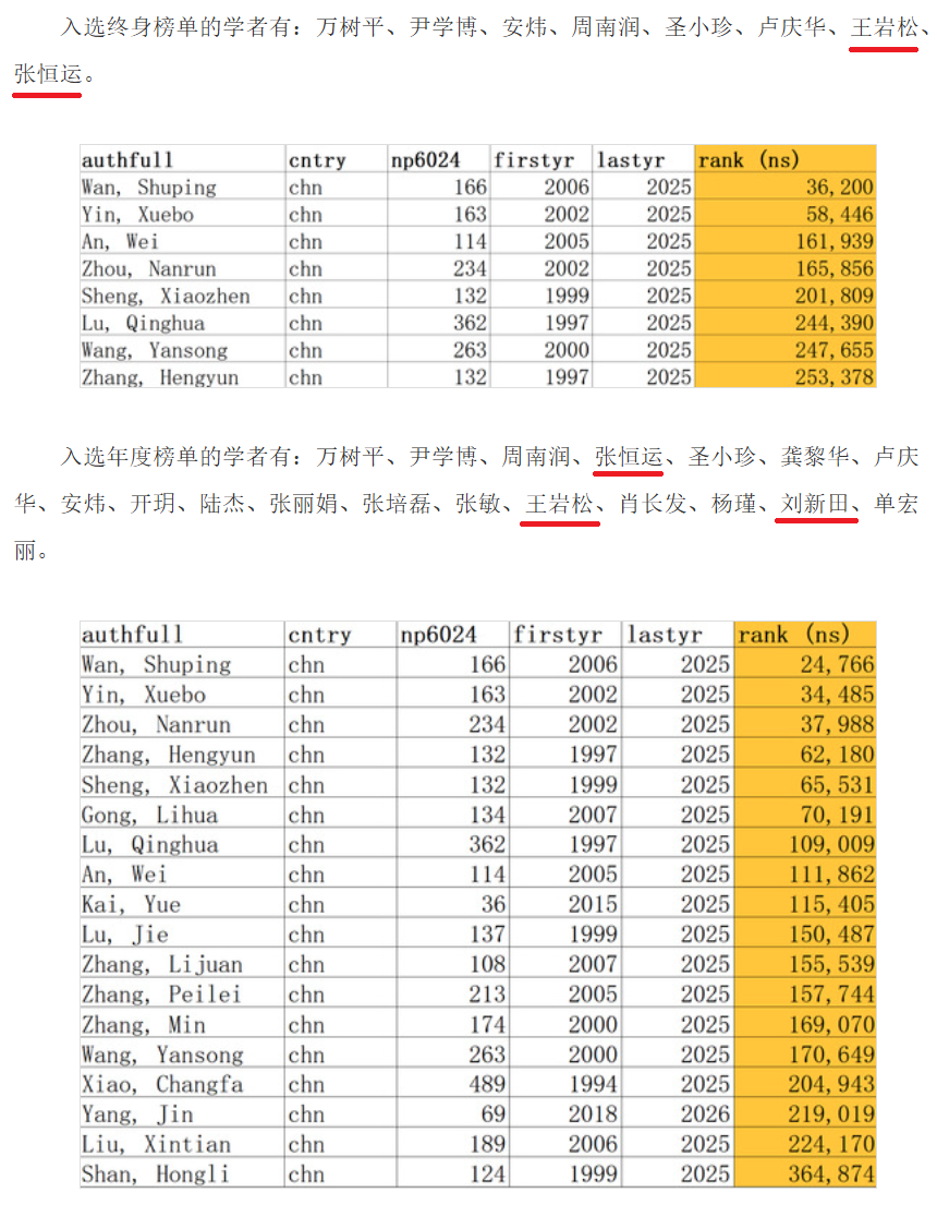 近日,美国斯坦福大学与国际权威学术出版社爱思唯尔共同发布了“2025年全球前2%顶尖科学家榜单”,车辆工程学科王岩松、刘新田、张恒运三位教授成功入选“2025年年度影响力榜单”。其中,王岩松、张恒运两位教授同时进入“终身科学影响力排行榜”。